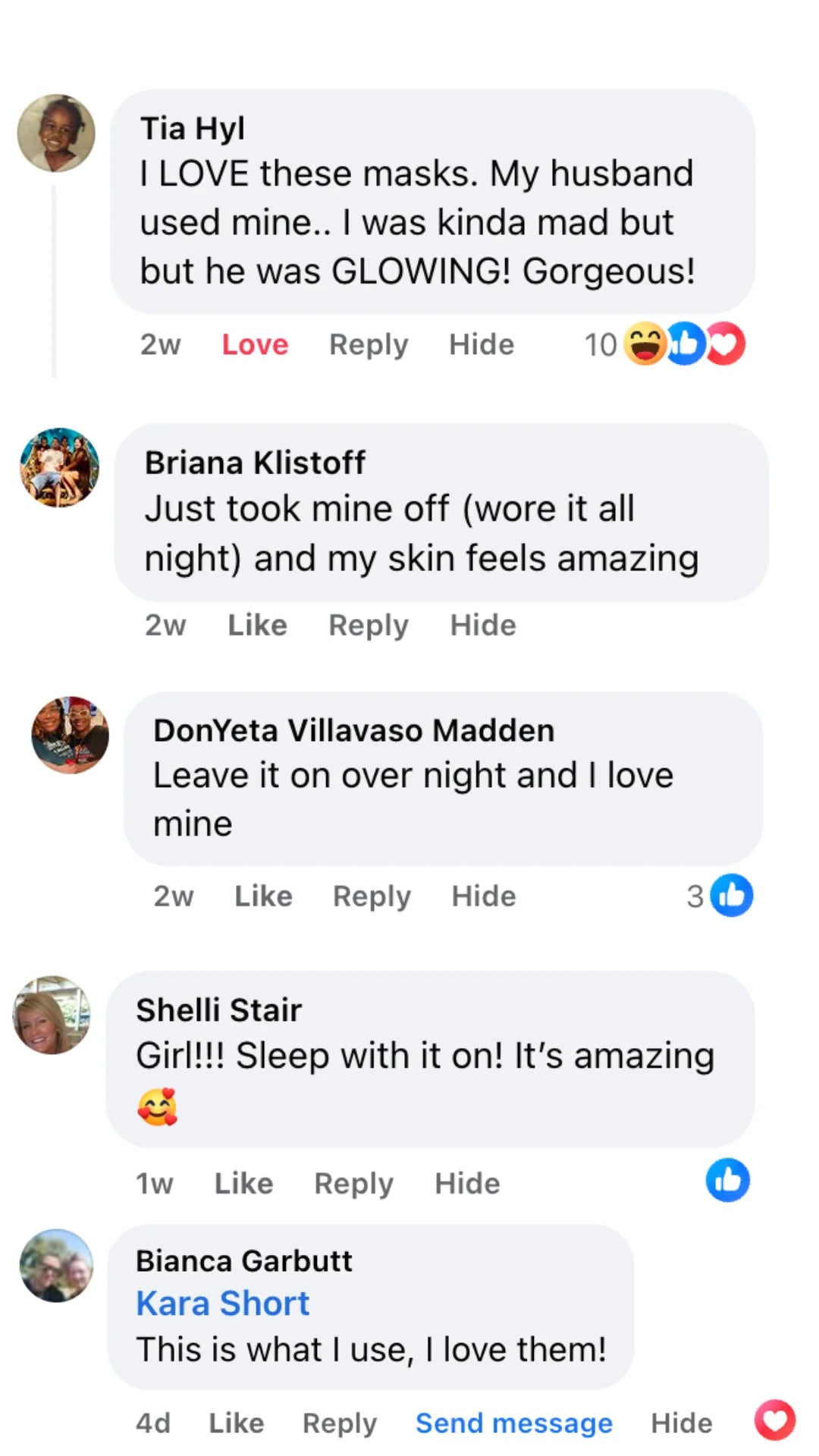 "l used the mask before a big eventand was shocked at how smooth andradiant my skin looked just two hourslater.Got so many compliments thatnight!"