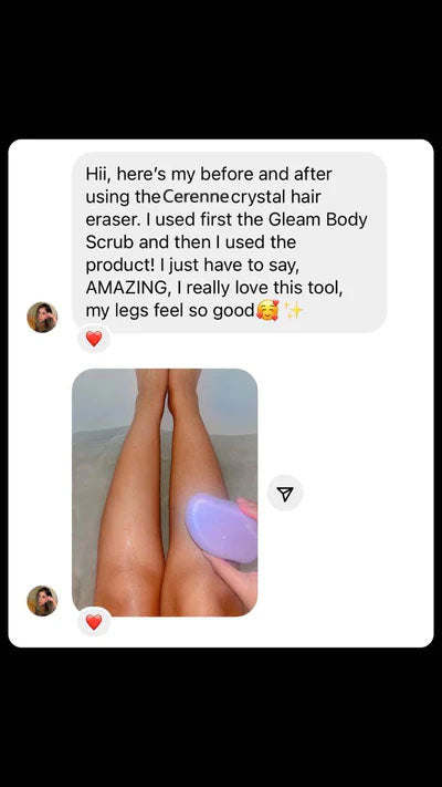 Using Nano-Crystalline technology, Cerenne™ Crystal Hair Eraser allows the hair to clump and break from the surface when rubbed gently on the skin. This process also helps exfoliate, revealing baby smooth skin after use 💜